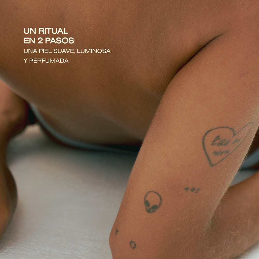El dúo se compone del jabón cremoso y del aceite sedoso para el cuerpo, perfumados con las notas solares de Le sud, la nuit.