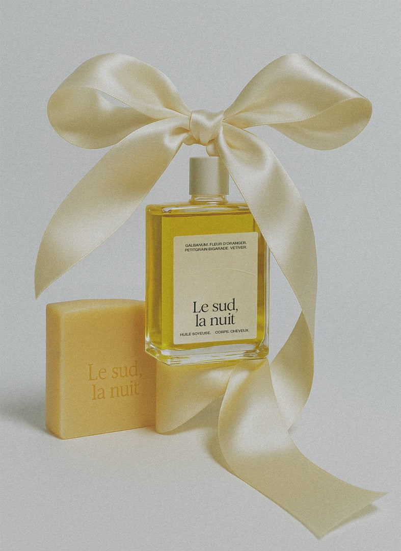 « ¡El exfoliante que invita al verano a su ducha! La fragancia El Sur, la Noche le transporta a un verano en el Sur, para un momento suspendido, sentado bajo un naranjo amargo. »