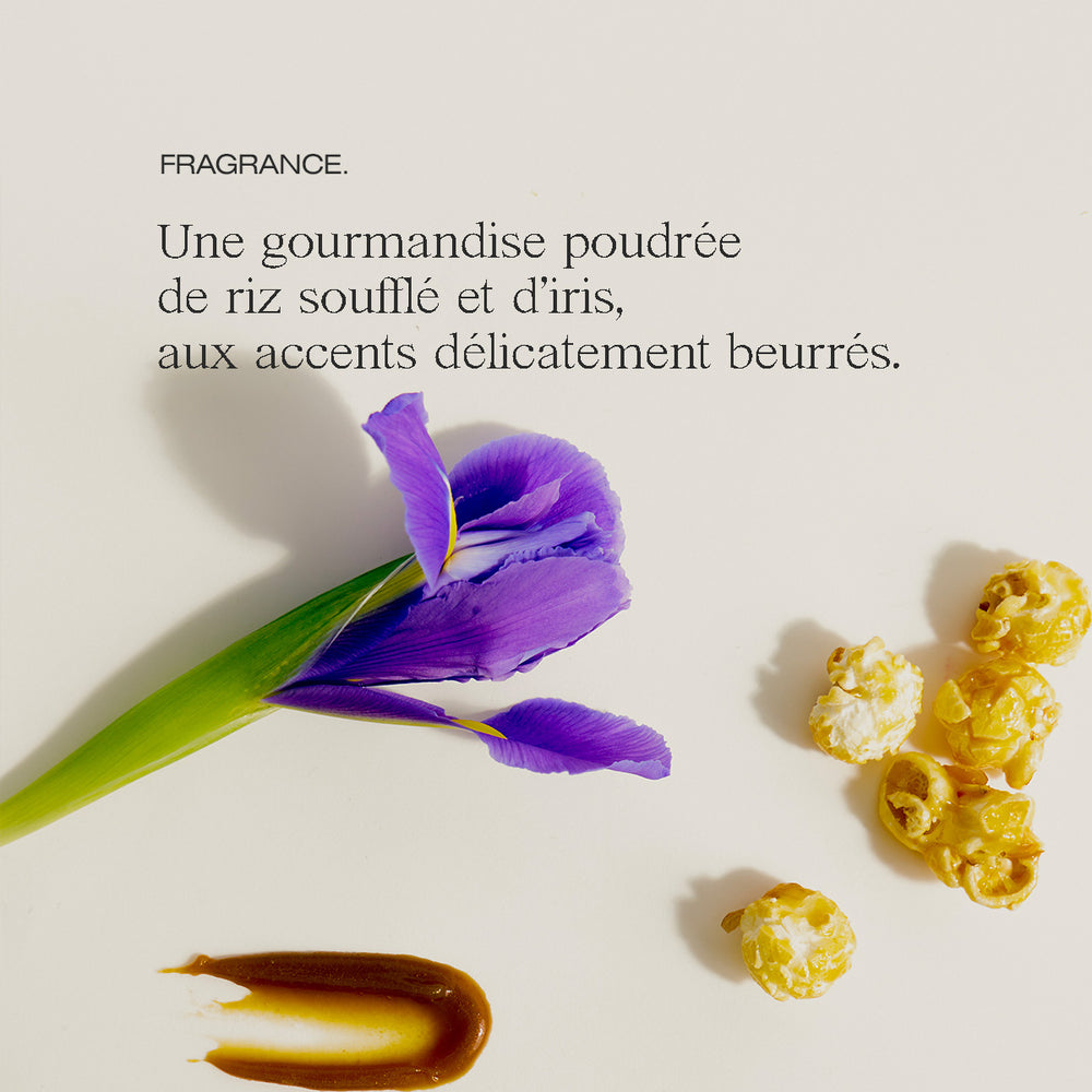 "Cette huile évoque la gourmandise d’une sucrerie qui crépite, le calme suspendu d’un ciel étoilé, la chaleur d’une peau encore tiède."